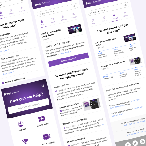 At Roku, I focused primarily on improving and optimizing the way users get help when they have a problem with their Roku device. The customer support experience is crucial to maintaining the trust and loyalty to the Roku ecosystem, and the delight they feel when using our products.
