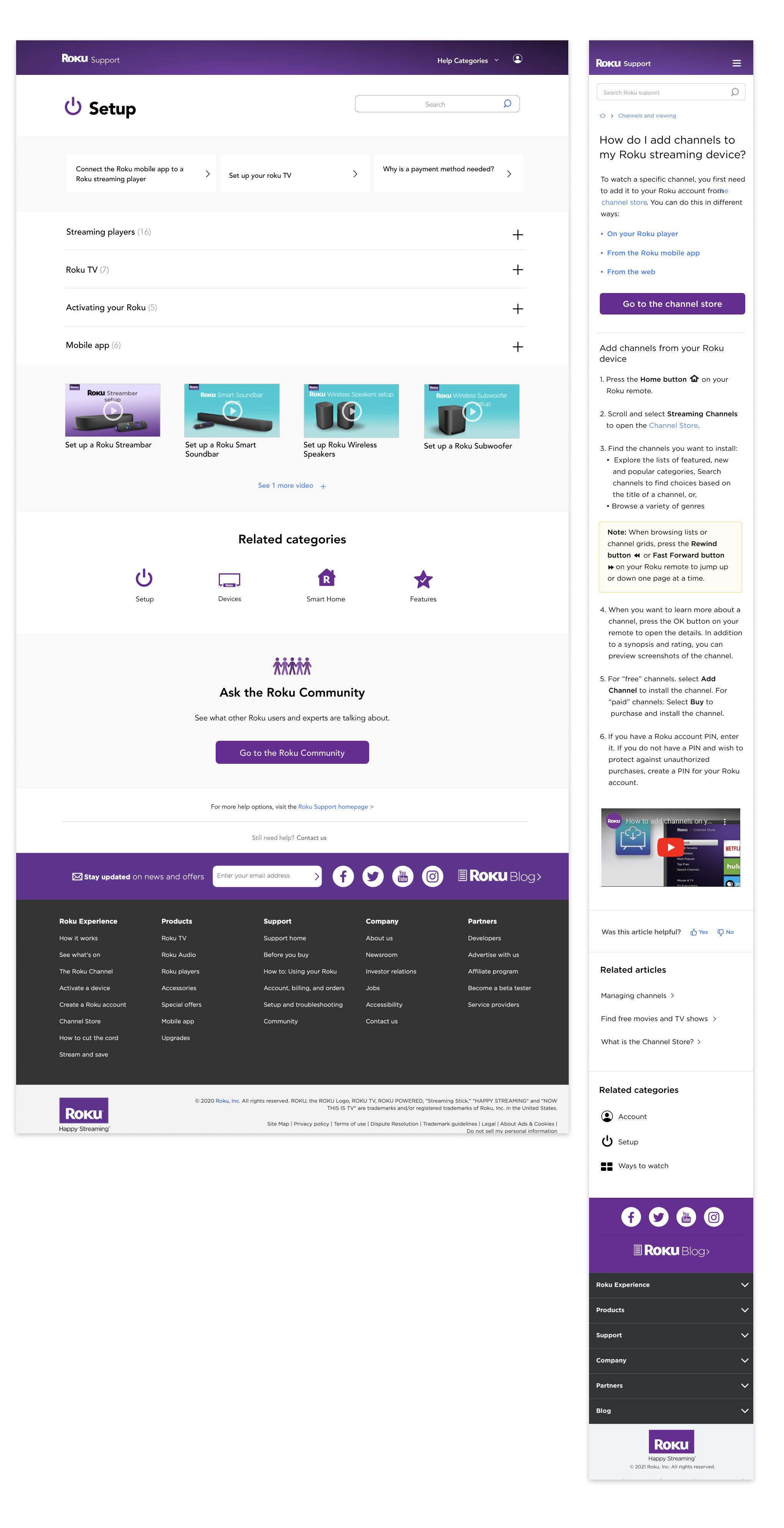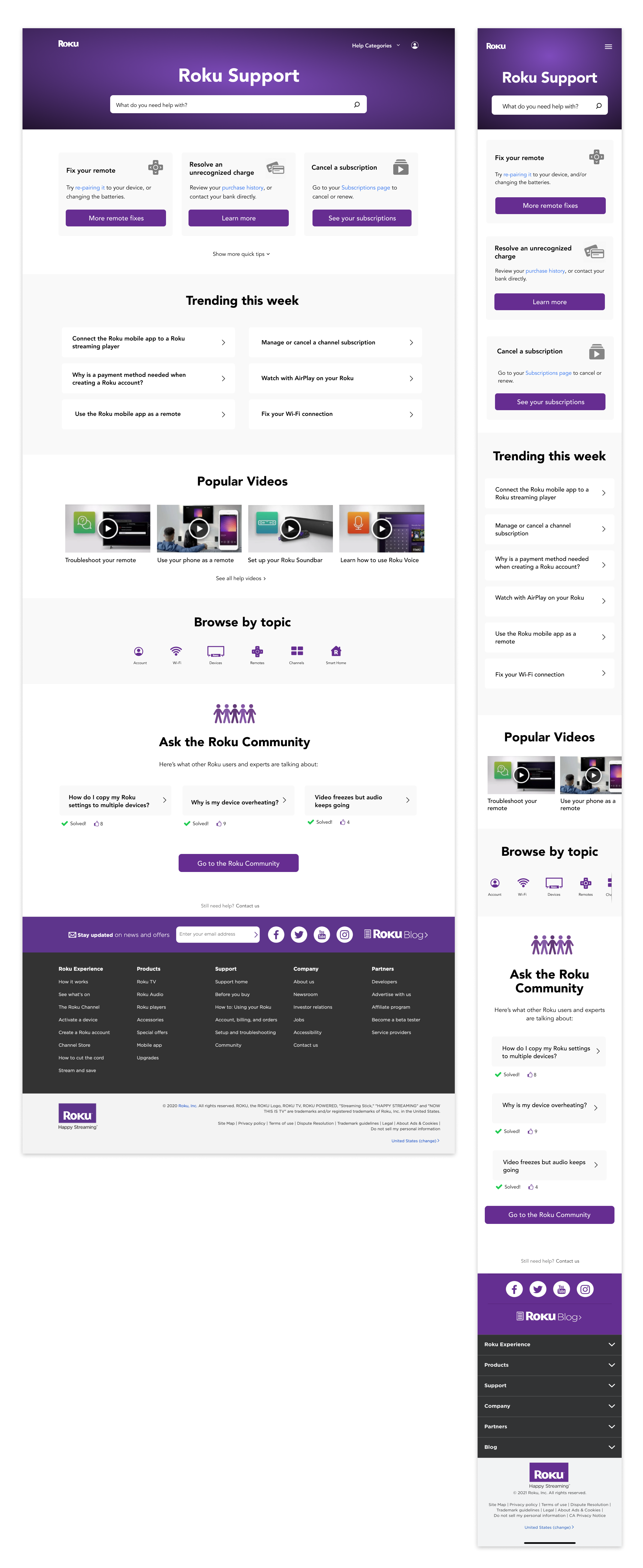 • UX, UI & Visual Design for the Roku customer Support website redesign