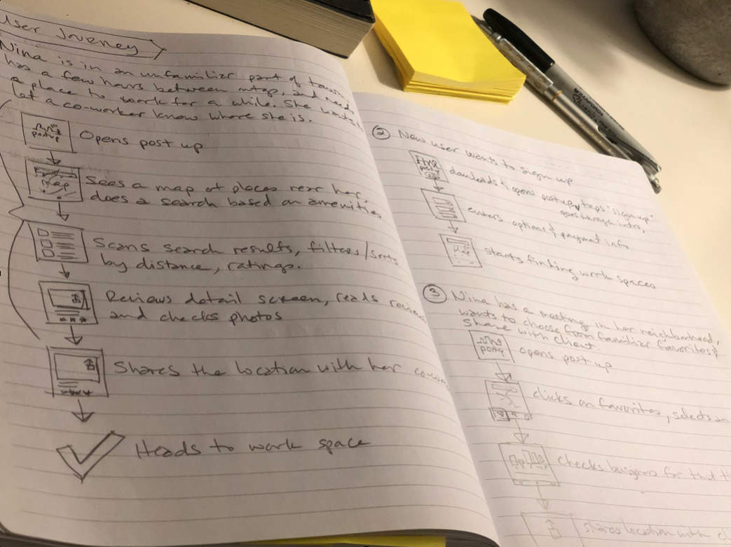 Putting myself in the users’ shoes, I created a few typical user journeys to get a sense of the steps they go through while needing support - What are they thinking? Feeling? Doing? Where are they? What device are they on? Where do they get frustrated? What content do they need on each screen along the way?