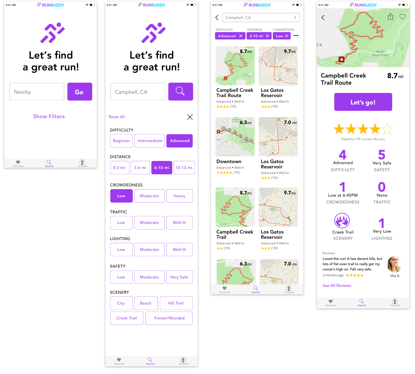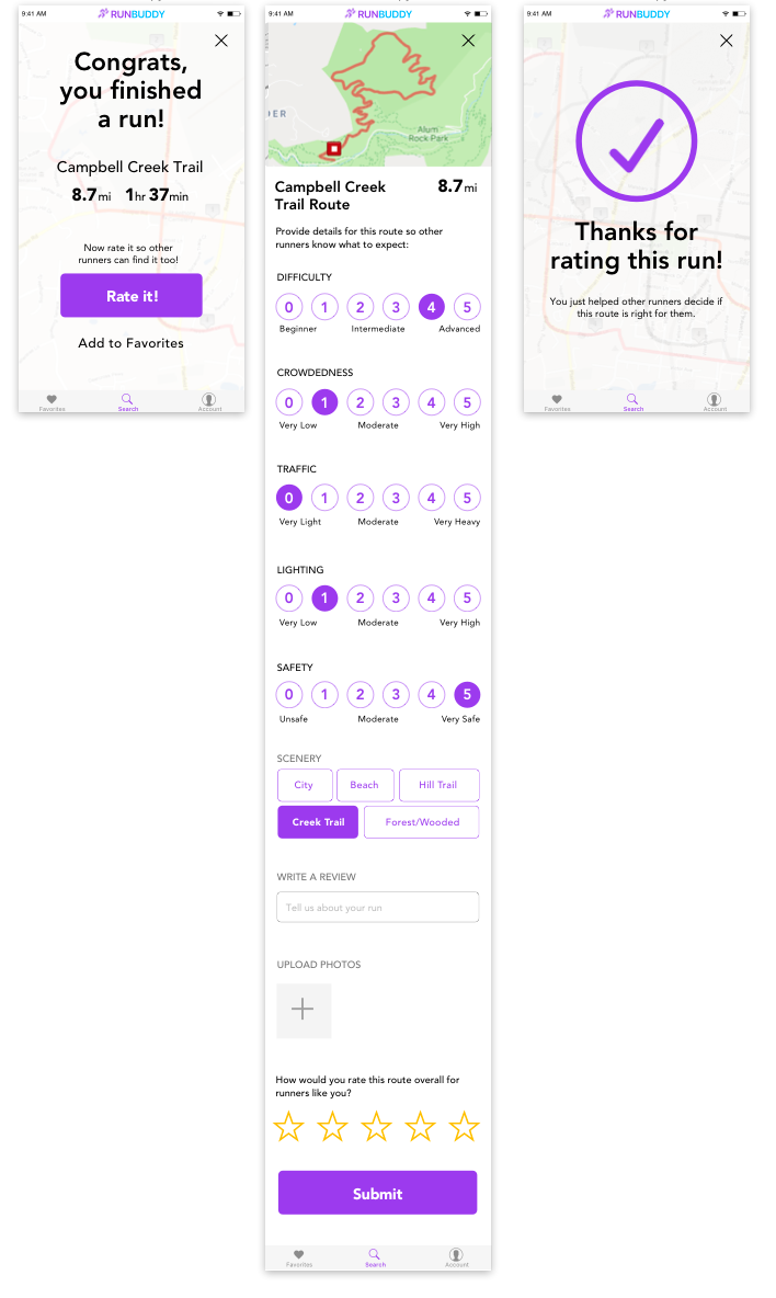 • make a hi-fi prototype with additional features such as creating a run, favoriting, and writing a review